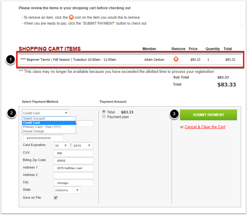 If you have a credit on file that you would like to use toward your class purchase, please call the Front Desk to register. Your credit cannot be applied through the member portal. (708) 386-2175