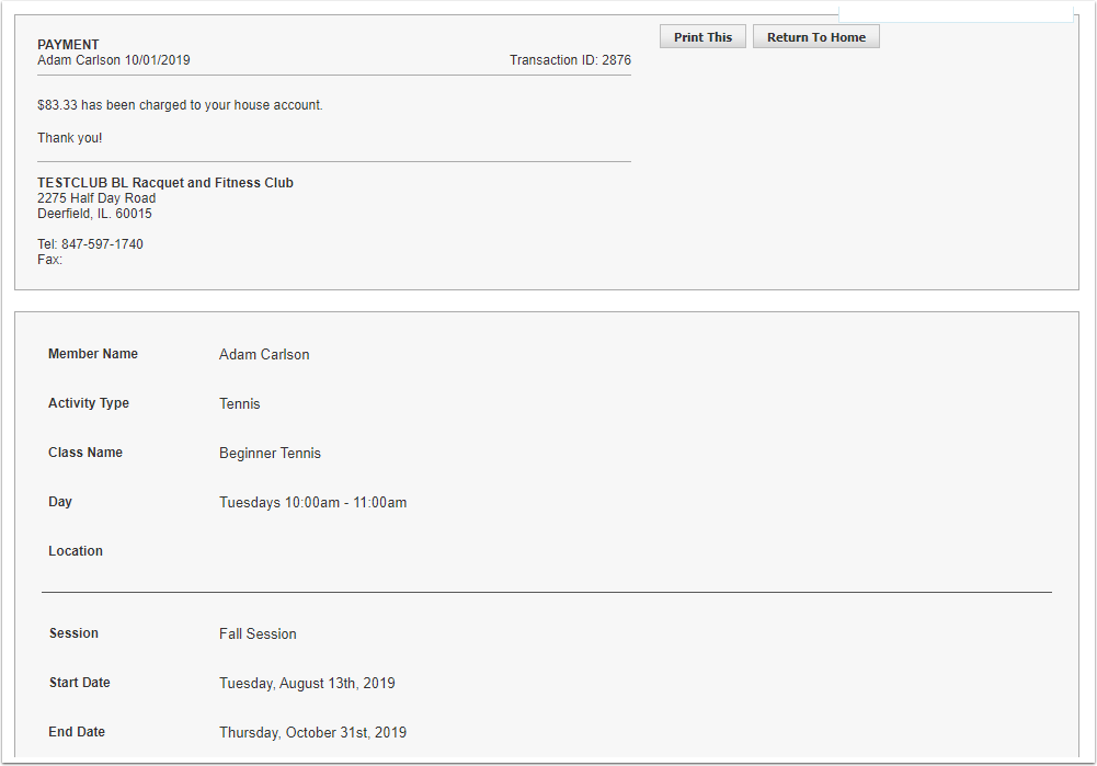 If payment was successful, a confirmation page with receipt details will generate. You can print this page for their records.