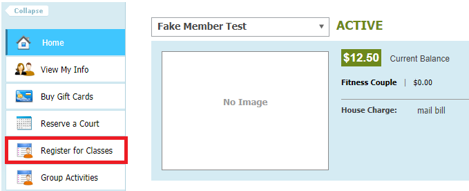 Once logged into the Member Portal, select Register for Classes on the left-hand navigation menu.